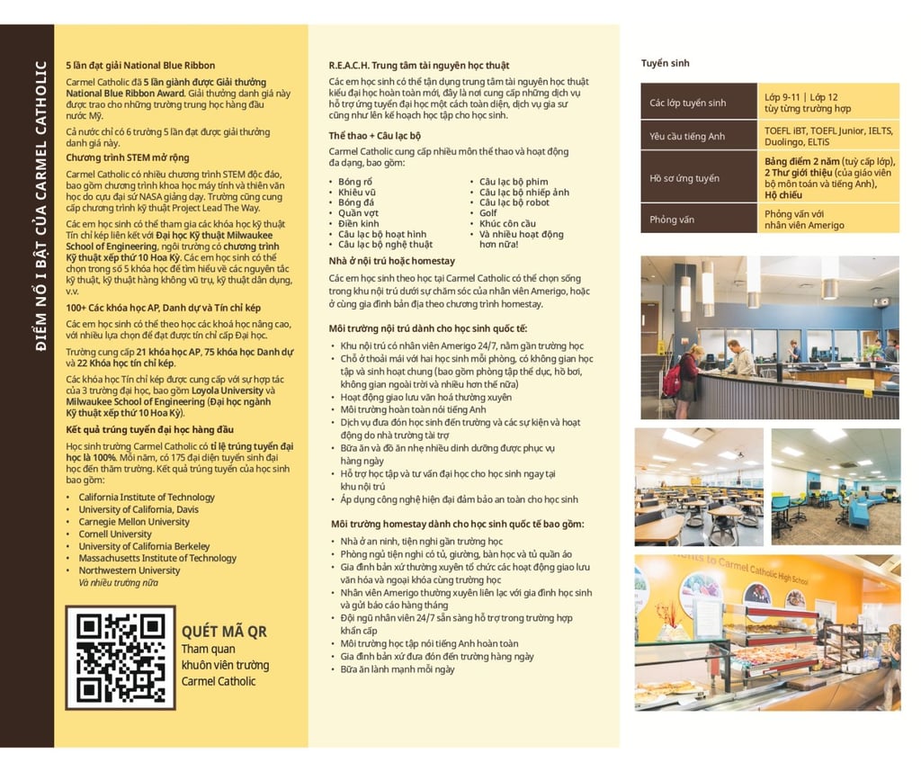 Carmel Catholic High School, trường năm lần đoạt giải Blue Ribbon, cung cấpcho các em học sinh hơn 100 khóa học AP, Danh dự và Tín chỉ kép cùng cơ sở vật chất đắng cấp thế giới - tất cả đều trong một môi trường ấm áp, thân thiện.