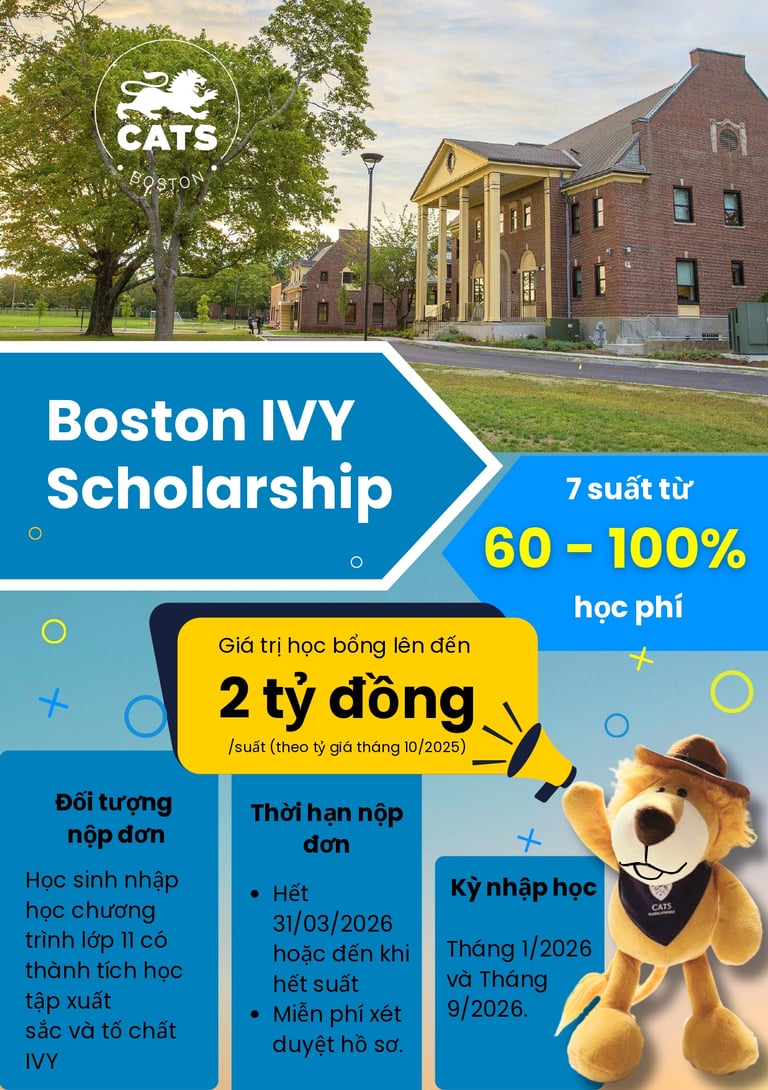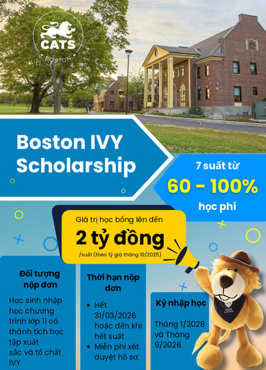 HỌC BỔNG CỰC HẤP DẪN TỪ TRƯỜNG TRUNG HỌC HÀNG ĐẦU MỸ - CATS ACADEMY BOSTON, NĂM 2026