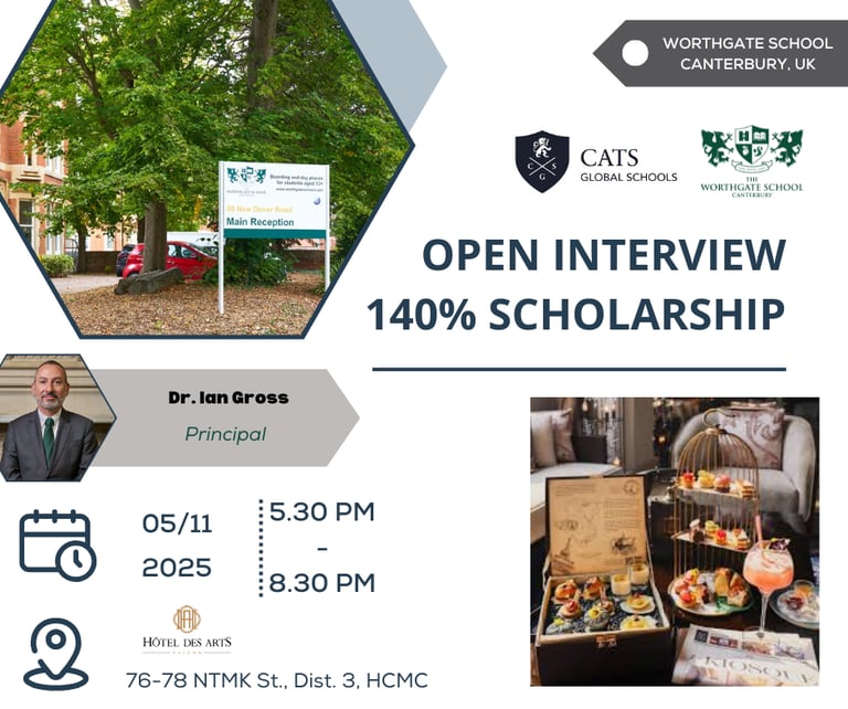 Phỏng vấn học bổng 140% trường trung học nội trú The Worthgate School, Anh Quốc