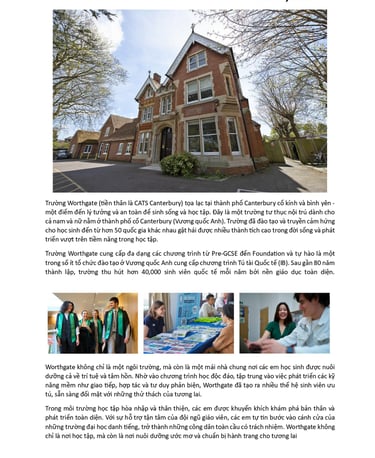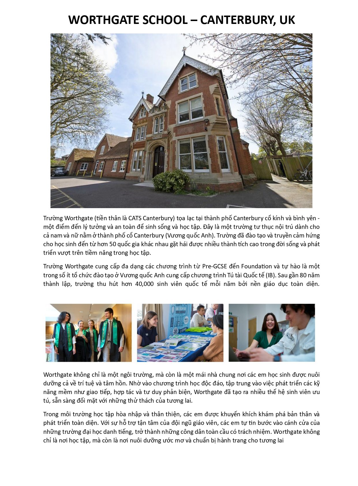 Chương trình học bổng toàn phần (100%) dành cho các bạn du học sinh Việt Nam xuất sắc, từ trường Worthgate School thuộc tập đoàn CATS Global Schools